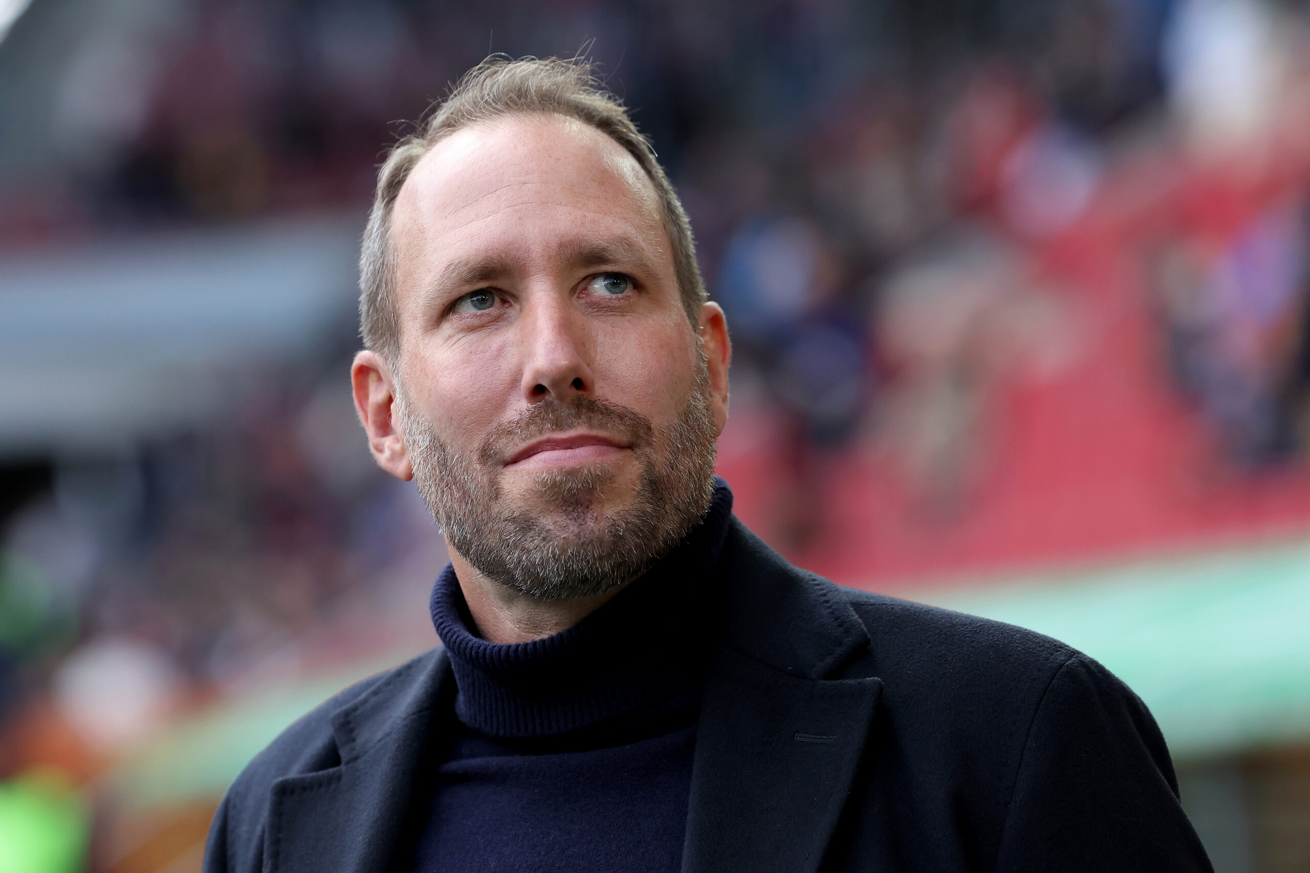 AUGSBURG, GERMANY – SEPTEMBER 15: Managing director Michael Ströll of FC Augsburg looks prior to the Bundesliga match between FC Augsburg and FC St. Pauli 1910 at WWK-Arena on September 15, 2024 in Augsburg, Germany. (Photo by Alexander Hassenstein/Getty Images)