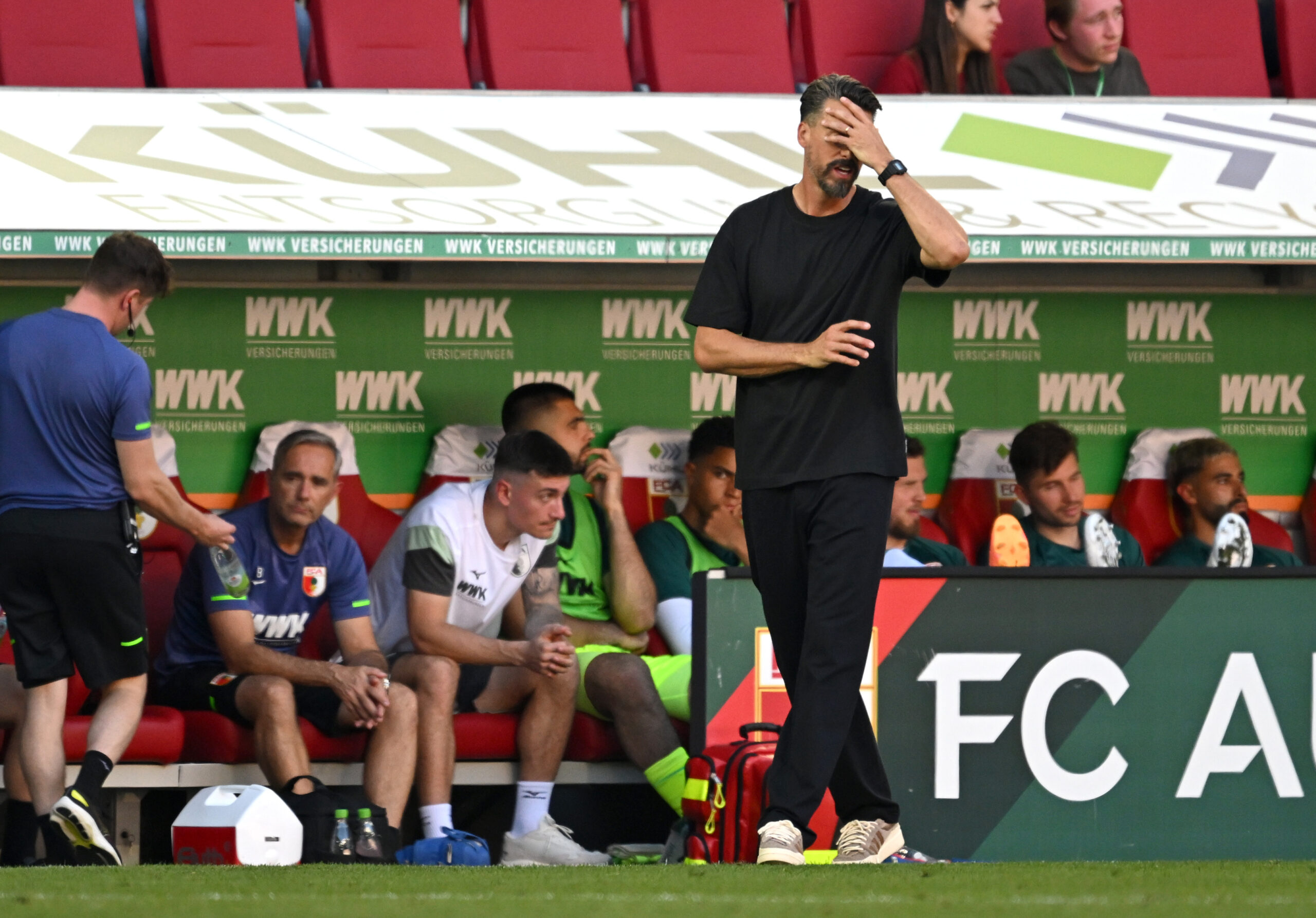 AUGSBURG, GERMANY – SEPTEMBER 20: Sandro Wagner, Head Coach of Augsburg reacts on the touchline during the Bundesliga match between FC Augsburg and 1. FSV Mainz 05 at WWK-Arena on September 20, 2025 in Augsburg, Germany. (Photo by Christian Kaspar-Bartke/Getty Images)